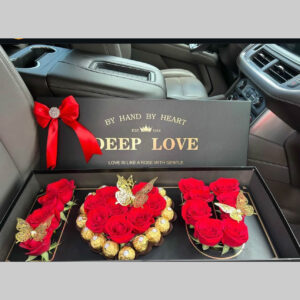 So much beauty in one package.Get this combo of roses and chocolates presented in our luxury Deep Love box.The receiver will definitely be elated by this gift.