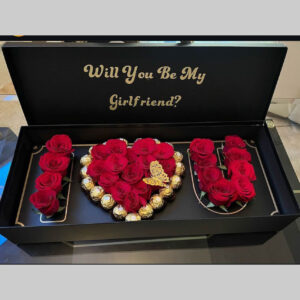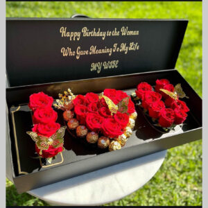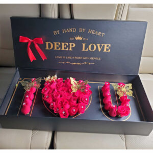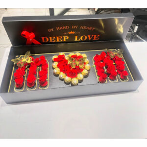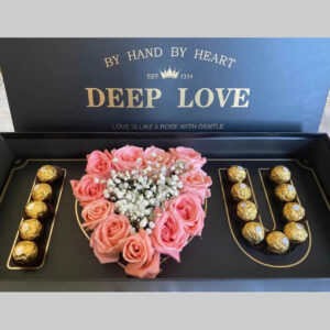 Customised Deep Love box with flowers,chocolates and butterfly decoration and custom message .Shop with us we deliver same day to your doorstep.