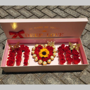 Customised Deep Love box with flowers,chocolates and queen crown decoration .Shop with us we deliver same day to your doorstep.