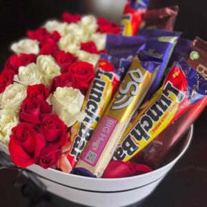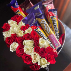 Show love with these yummy treats! This amazing hamper consists of 8 pieces of assorted chocolates and flowers in our luxury heart shaped box that will delight the receiver. Available for same day delivery.
