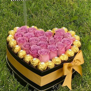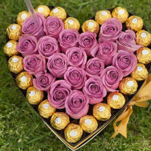 Such a vast arrangement of fragrant roses and chocolates will win the heart of even the most sophisticated beauty. And you would be a hero in her eyes for a long long time!